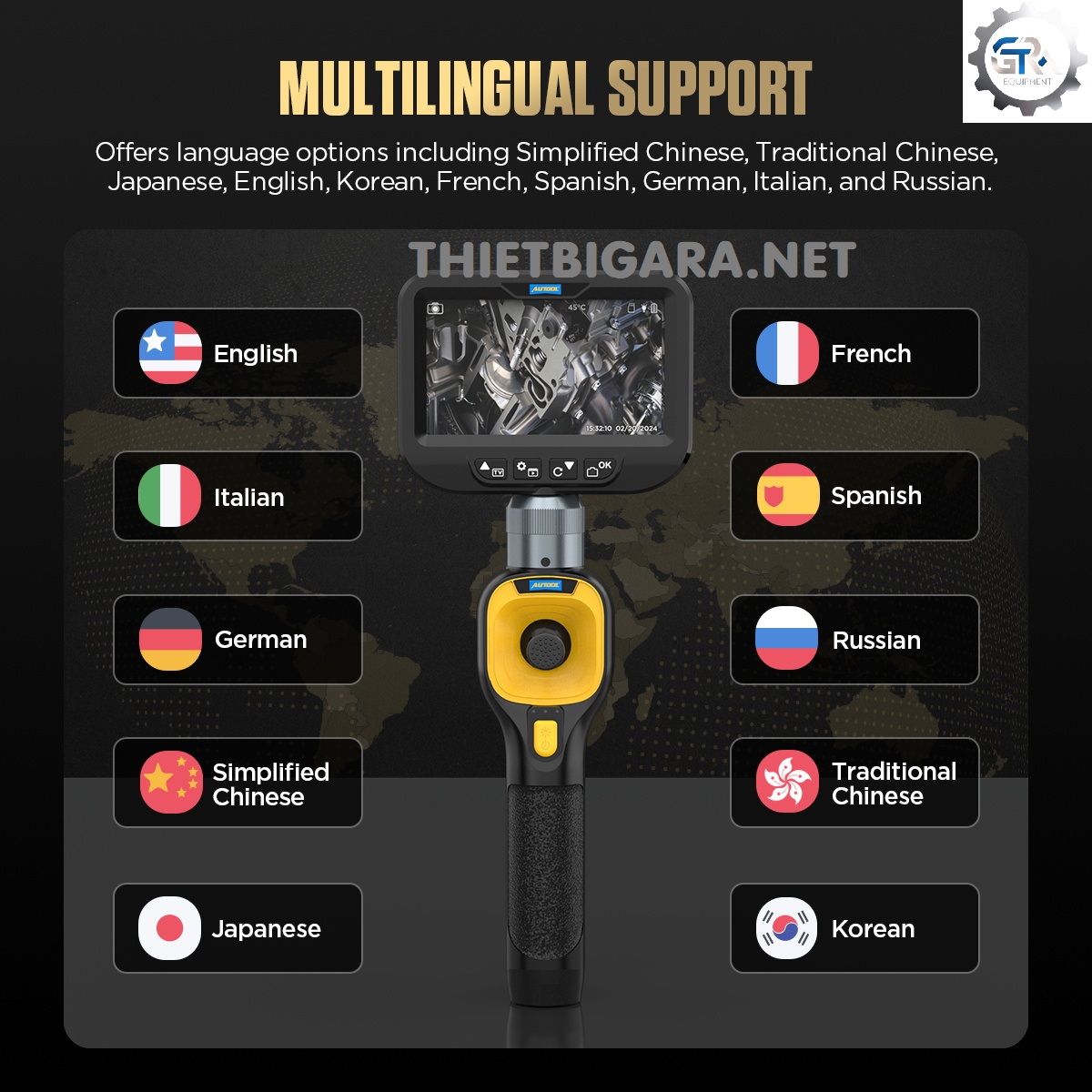 - Thiết kế đa ngôn ngữ: Hỗ trợ tiếng Anh, tiếng Pháp, tiếng Tây Ban Nha, tiếng Nga, tiếng Trung phồn thể, tiếng Hàn, tiếng Ý, tiếng Đức, tiếng Trung giản thể và tiếng Nhật.