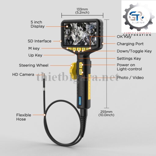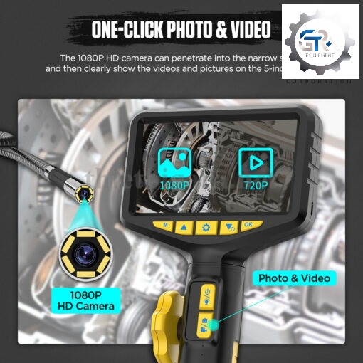 - Camera 1080P HD có thể thâm nhập vào không gian hẹp, sau đó hiển thị rõ ràng video và hình ảnh trên màn hình 5 inch.