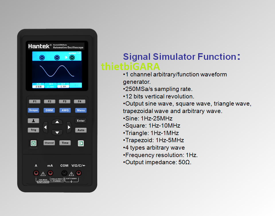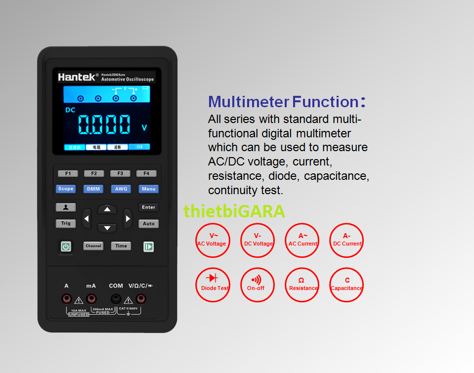 Thiết bị đo Oscilloscope ô tô – Hantek 2D82 AUTO Kit II Là thiết bị đo xung được thiết kế nhỏ gọn thuộc dòng Hantek2000 series. Hantek 2D82 Auto là thế hệ mới nhất được trang bị 4 tính năng: chẩn đoán, đo xung, giả lập tín hiệu và đồng hồ đa năng.