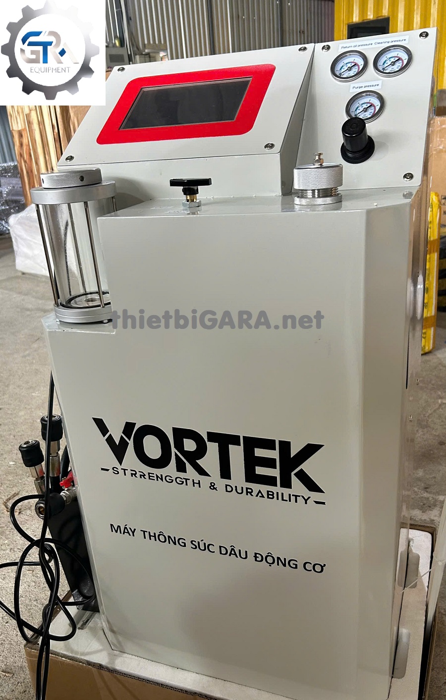 - Tuần hoàn dung dịch làm sạch: Một lượng lớn dầu khoáng làm sạch (thường là dầu súc rửa chuyên dụng, có thể được làm nóng) được bơm liên tục qua động cơ. Máy sử dụng áp suất và lưu lượng để đảm bảo dung dịch đi đến mọi ngóc ngách của hệ thống bôi trơn, hòa tan và cuốn trôi các cặn bẩn, muội than và bùn dầu.